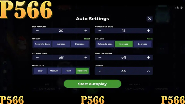 One of the standout elements is the advanced autoplay feature. Players can automate their rounds by selecting the number of plays, preferred difficulty, bet size, and cashout strategy. You can also set specific actions for what to do on a win or a loss. For example, strategic bettors will appreciate the built-in Martingale system, which automatically increases your bet after each loss.